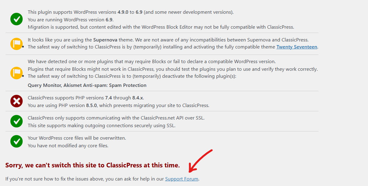 The first one, I can fix my downgrading PHP to 8.4, but CP 2.6.0 is fully compatible with PHP 8.5. I tested it. There might be edge cases, but this plugin is targeted towards developers anyway, so I’m sure we can bump PHP to 8.5.