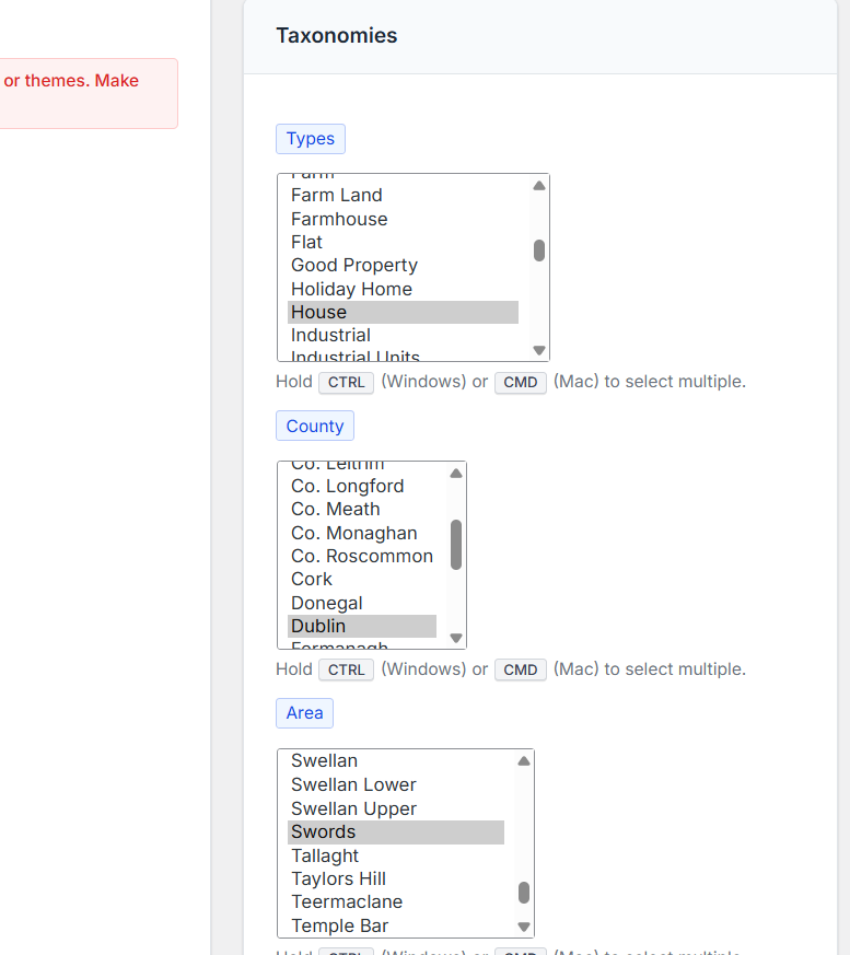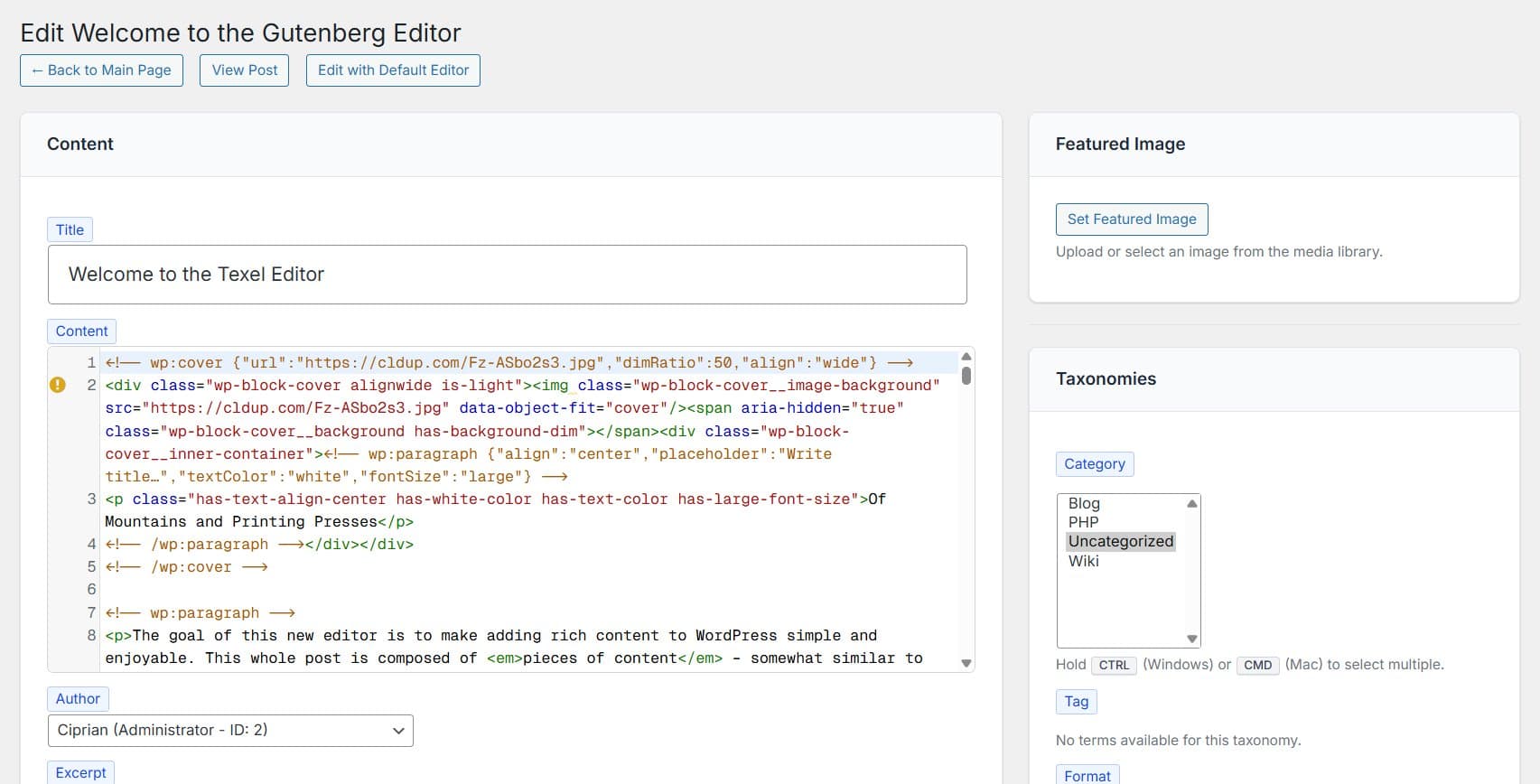 Your last screenshot lists the Taxonomies, how does that work in conjunction with your editor? Or not relevant for the editor itself, because it simply displays the taxonomy/terms of the post/page that is currently edited?